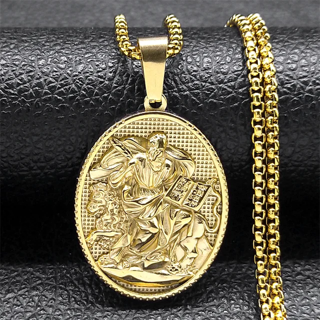 Vintage Christian Saint Medal Pendant Necklace