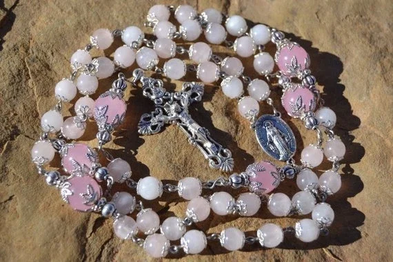 Heirloom Pink Rose Quartz Catholic Rosary