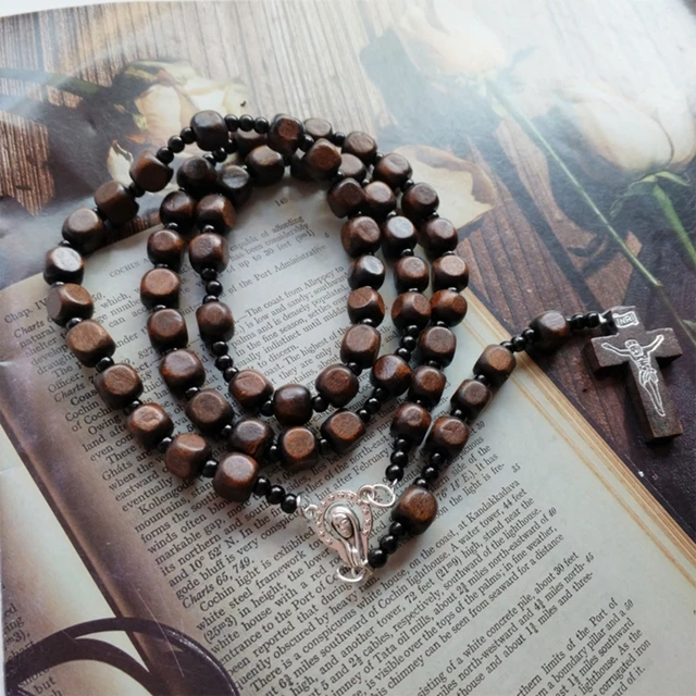 Handmade Catholic Rosary for Women / Men (Wood Beads Weaving Necklace)